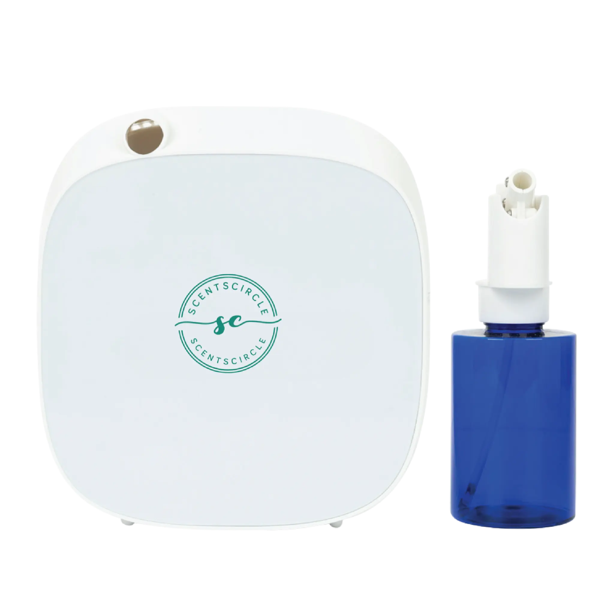 Smart small Scent Diffuser is a plastic-bodied aroma diffuser. Small in size and coverage, this aroma diffuser is best for areas below 100 CBM. The battery-operated fragrance delivery system can also be used with the power cable. This diffuser takes 100ml aroma oil as a refill.